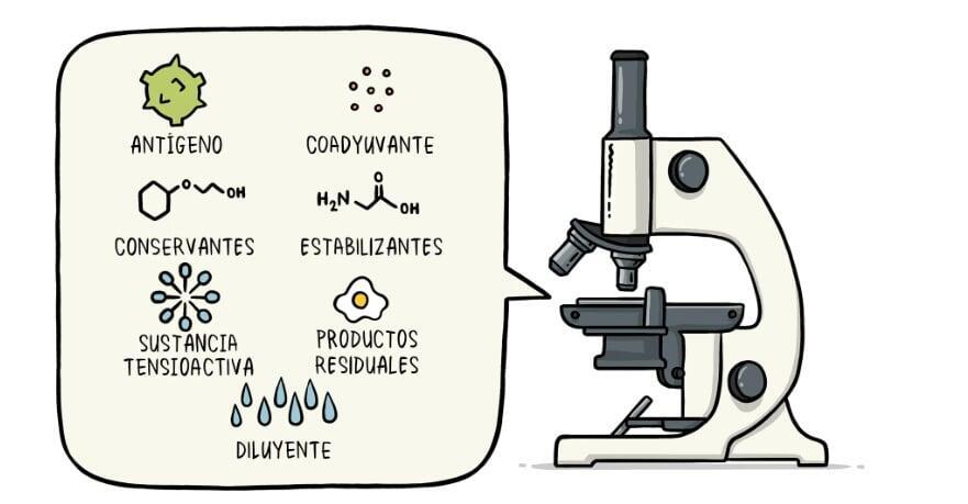 Además, las vacunas incluyen otros componentes que garantizan su seguridad y eficacia, como:
